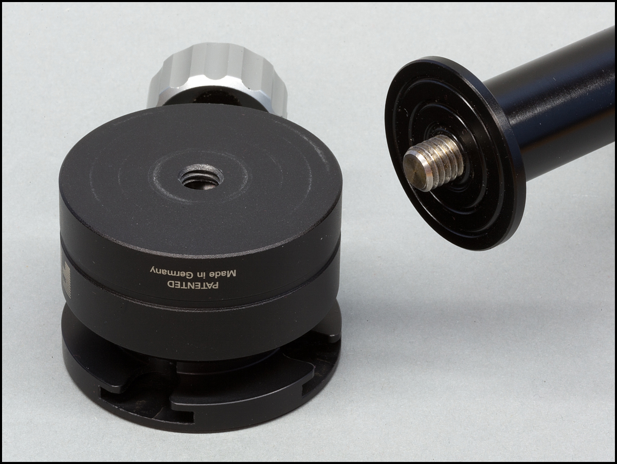 "Das Ministativ selbst hat keine Nivelliereinrichtung d.h. die Mittelsäule geht immer lotrecht zum Schulterstück raus.