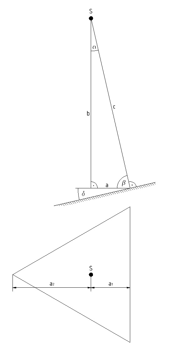 In dieser Grenz-Position steht die Hypotenuse des Dreiecks (c) im rechten Winkel zum nivellierten Boden.
