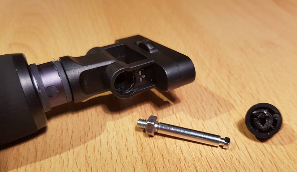 Letztendlich habe ich das Gelenk verklebt und eine kurze Schraube + Orignalmutter zur Verstärkung eingeschraubt.