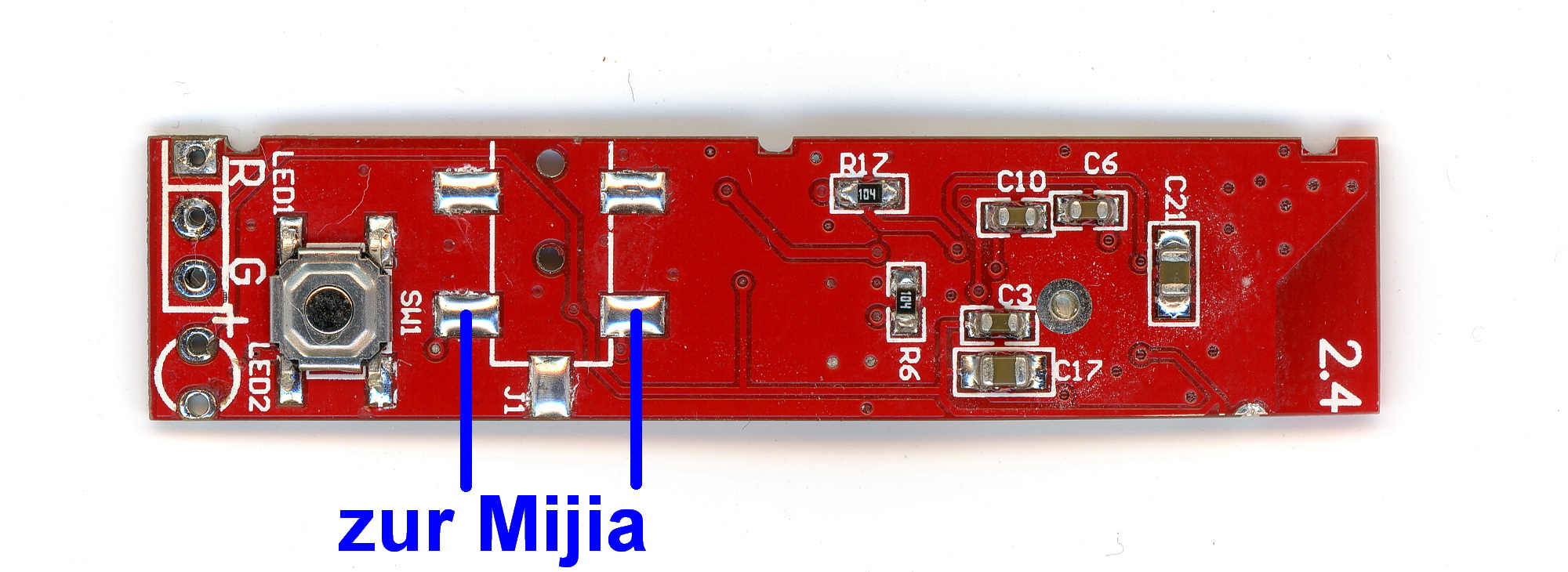 - Die L-förmige Platine könnte man kürzen und die Spannunganschlüsse woanders anlöten.