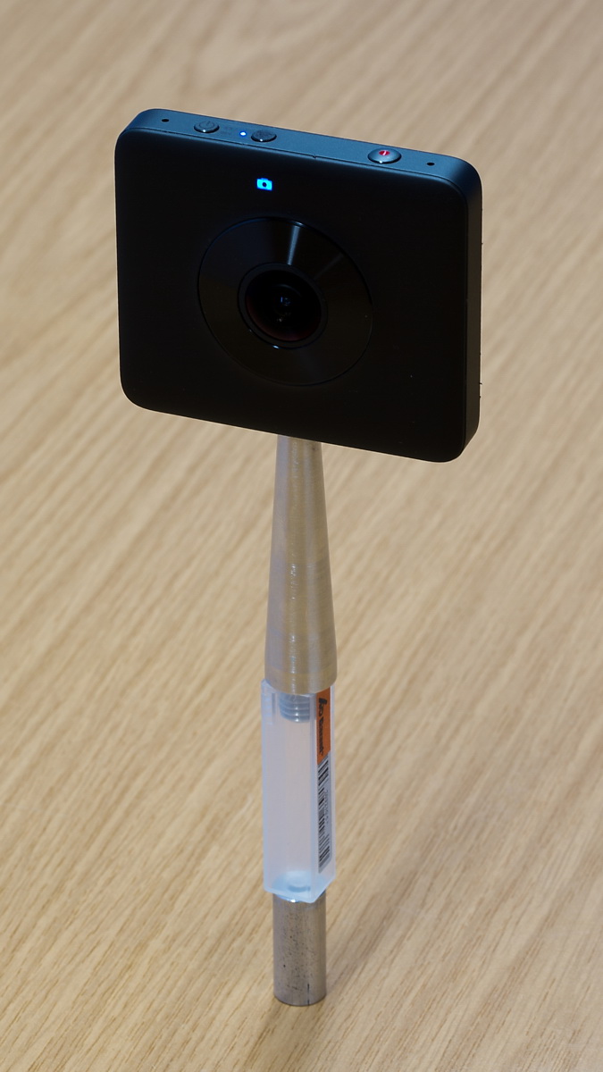 In einem weiteren Test hab ich meine angeschlagene Mijia wie schon zuvor auf den Funkauslöser montiert und diesen mit dem konischen Adapterstück auf den Tisch gestellt.