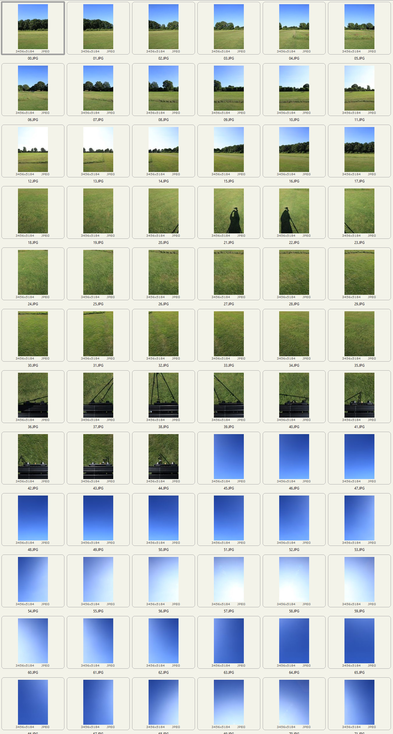 1.) 0-Grad-Reihe: 18 Bilder mit 20 Grad horizontalem Versatz