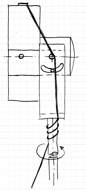 Ich denke da an einen Art Winkel die über eine umlenkrolle mit einer Kordel gezogen werden kann