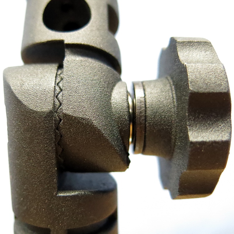 Anstatt (dem relativ schweren) NN3 ist es besser, wenn man sich einen L-Winkel macht, der so geformt und gebohrt ist, dass er die Kamera samt Fisheye und Funkauslöser im Schwerpunkt hält. Die Möglichkeit für einen Höhenschwenk ist damit prinzipiell auch möglich.
