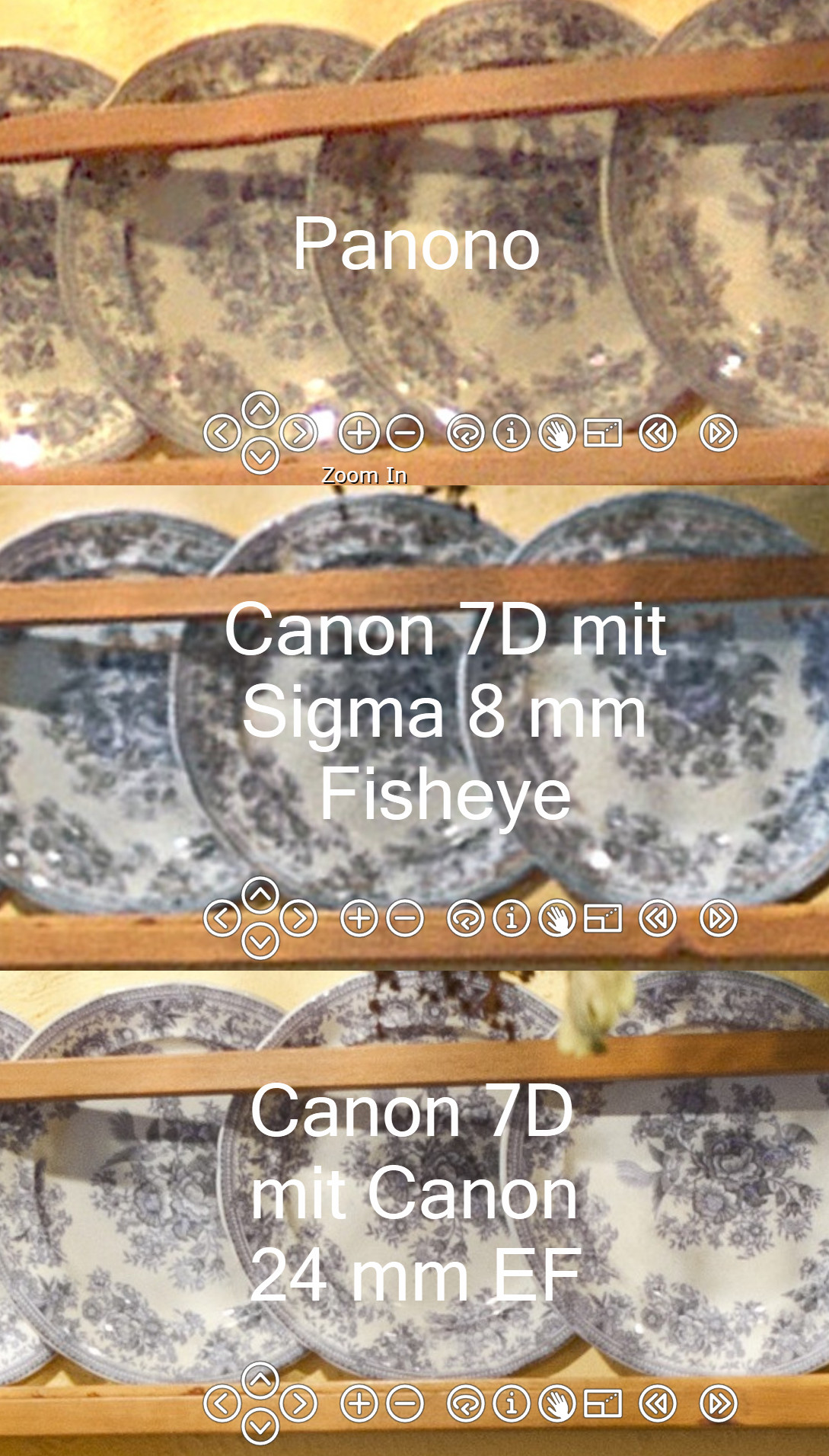 Also mir gefällt das Panorama mit 8 mm von der Schärfe her am besten. Danach kommen die 24 mm und dann Panono. Obwohl die Schärfe von der Panono erstaunlich gut ist.