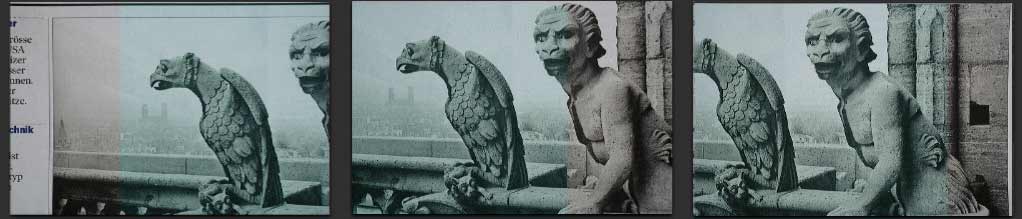 Es wäre für die Nachbearbeitung evtl. einfacher (mehr Überlappung), wenn Du die Kamera nicht so weit auseinander aufstellen würdest. Die Säule kann ja ruhig in jedem Bild enthalten sein, solange der dann von der Säule verdeckte Bereich in einem der anderen Bilder sichtbar ist. Konkret: vielleicht solltest Du die äußeren Standorte näher an die Mitte rücken.