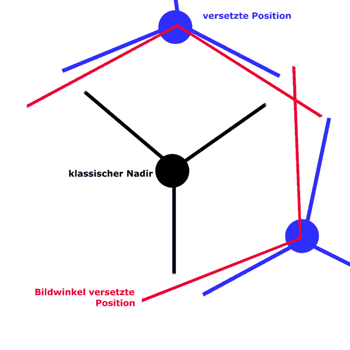 mit "2 - 3 versetzte Bodenbilder" meinte ich das Stativ um ca 50 cm  (??) gegen aussen zu versetzen; Position - Grundriss -  zwischen den "klassischen"  Nadir-stativbeinen, den Stativbereich fotografierend.
