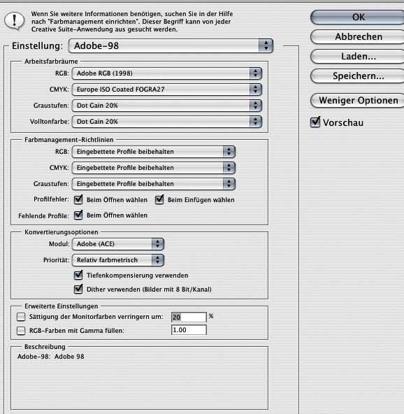 BTW: ein powerbook ist vom gamut doch recht eingeschränkt; habe selbst ein G- 4 Alubook, sogar kalibriert; im Vergleich zu meinem kalibrierten Grossen ist es - für farbverbindliches Arbeiten - nicht so toll, weshalb ich es dafür nicht einsetze.