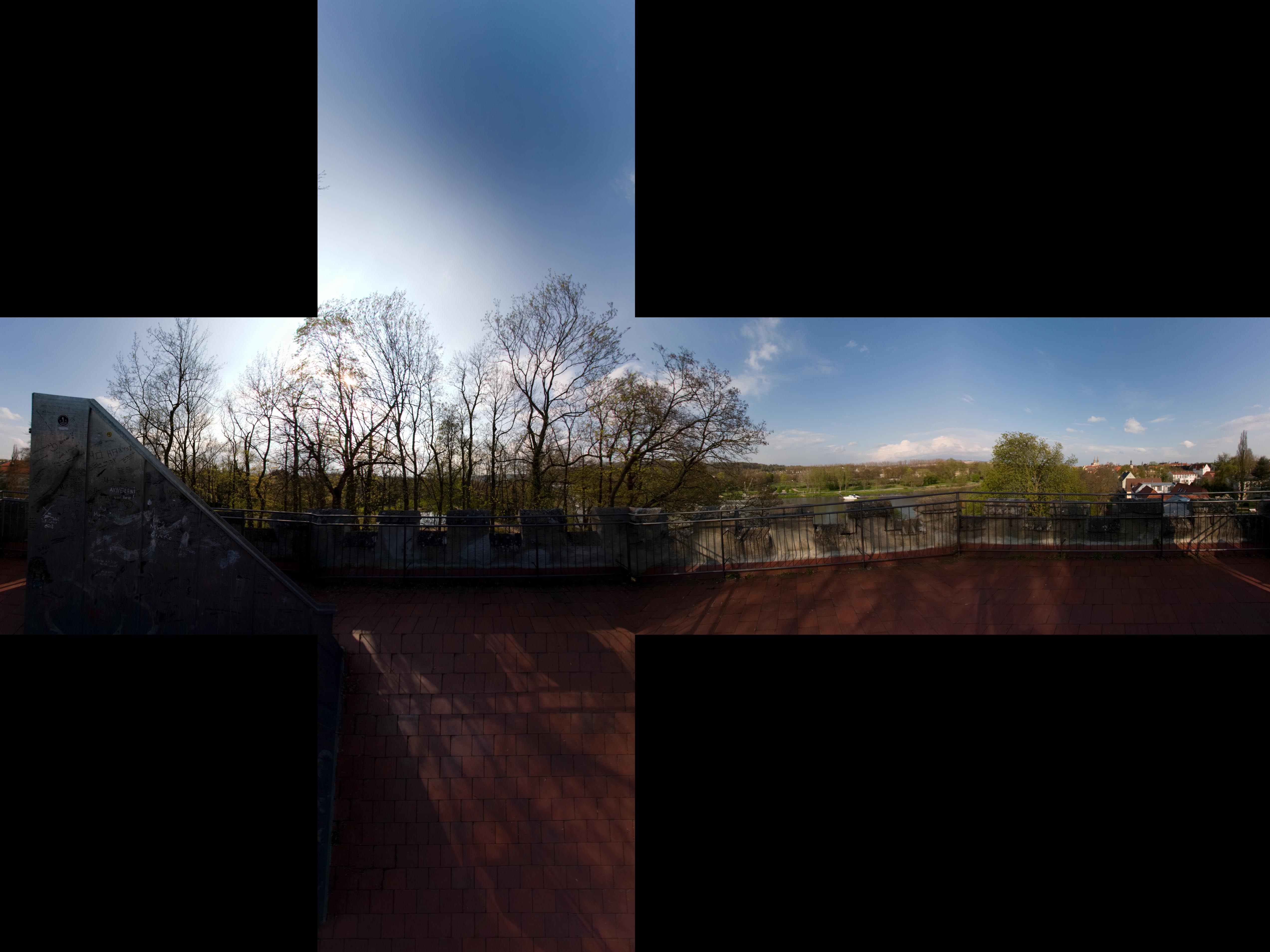 Habe auch schon versucht dann ohne Winkel und die Kamera Quer auf meinen 3-Wege-Kopf zu setzen und dann von schräg oben drauf zu halten, aber je mehr Winkel- und Höhenversatz im Bild ist desto höher die Gefahr, dass es beim Stitchen Probleme macht.