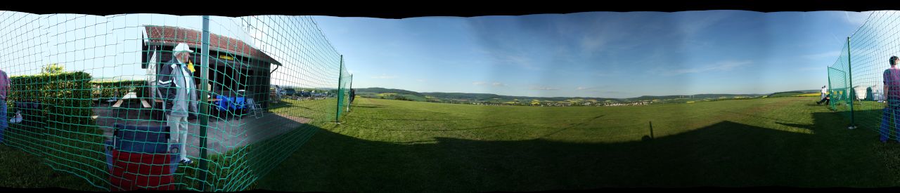 Da wird der Himmel schon mal einfach nach oben gestreckt oder großflächig angemalt, und auch die bekannten Sternformen im Zenith scheinen genau so wenig zu stören wie Phantasiewolken. Genau so sieht's dann am Boden aus, wo mächtig gestempelt wird, mit allen Mustern und Unschärfen, die so entstehen können. Manchmal bleibt eine weiße, schwarze oder wenns "ordentlich" werden soll, einfarbig grüne, kreisrunde Fläche im Nadir.