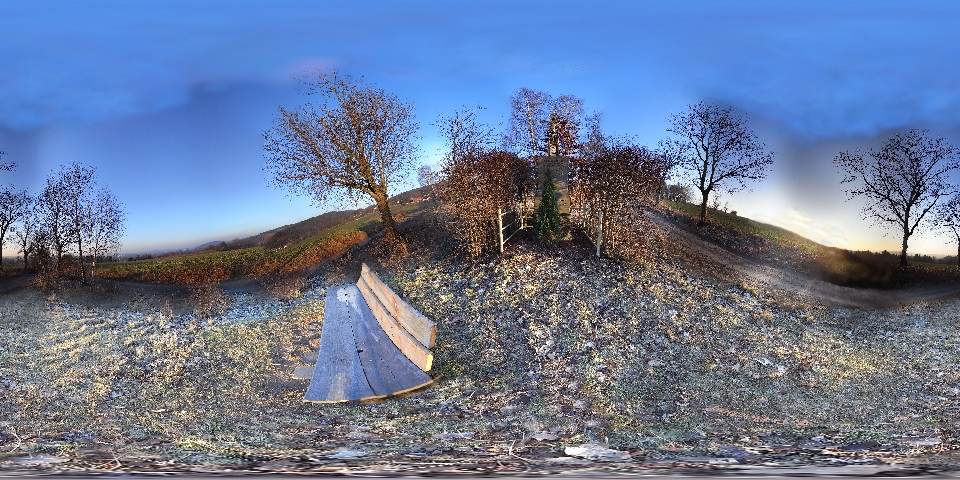 Standpunkt und Zeit der Aufnahme find ich schon einmal recht gut gewählt. Vielleicht hätte man noch etwas näher zum Marterl gehen können, also zwischen Bank und Marterl um genauer zu sein. Was die Aufnahmen angeht, sollte man immer mit der selben Belichtungszeit / Blende / Weißabgleich / ISO / Fokus arbeiten. Dann entstehen keine/kaum Unterschiede zwischen den einzelnen Bildern und man merkt nach dem Stichten die Übergänge nicht mehr.  Das sind eigentlich so die wichtigsten Sachen.