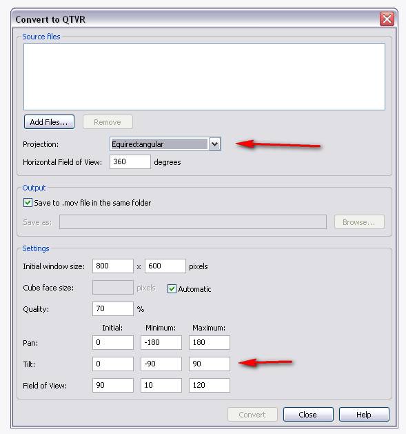 Du musst in den Einstellungen zu QTVR natürlich deine Angaben machen: