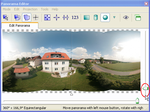 Welche Regler meinst du? Die für das Blickfeld müssten für das equirectangulare Bild eigentlich beide am Anschlag stehen. 360x180 eben.