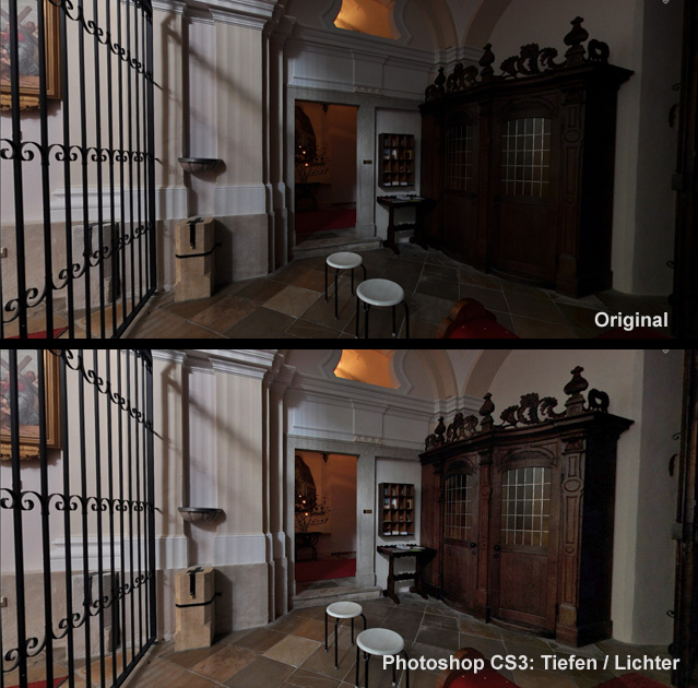 Hier nun also das Beispiel mit "Photoshop CS3 Tiefen/Lichter", in wenigen Sekunden durch die Bedienung eines einzigen Reglers erzeugt.  (Wenn Du nicht möchtest, dass das veränderte Bild hier gezeigt wird, dann nehme ich das wieder raus, sag mir einfach Bescheid.)