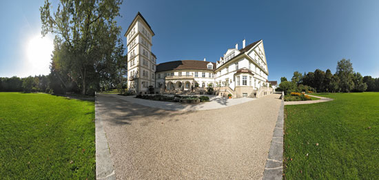 Das wird je nach Bildwinkel auch nicht anders gehen. Wenn der Bildwinkel über 80 oder 90 Grad geht, sehen Randbereiche im Bild bei rectilinearer Projektion (flaches Foto) schnell etwas "schräg" aus und je weiter der Winkle wird, desto schlimmer wird das. Die Darstellung ist zwar "physikalisch" völlig richtig, aber für uns Menschen, die wir nicht sehen, sondern "nur"wahrnehmen, ziemlich ungewöhnlich. Bei Motiven ohne wichtige gerade Linien im Bild kann man versuchen, mit der circularen Projketion etwas zu retten, aber das ist für Architektur nur unter ganz besonderen Umständen eine Lösung.