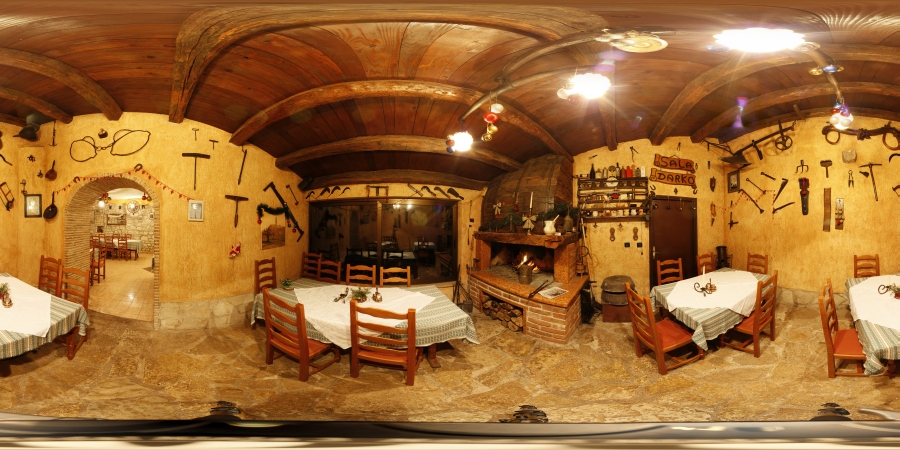 Und hier kommt der andere (groessere) Raum. Gottseidank ist die Decke strukturiert und nicht glatt. Beide Panoramen konnten ohne manuelle CPs "aligned" werden.