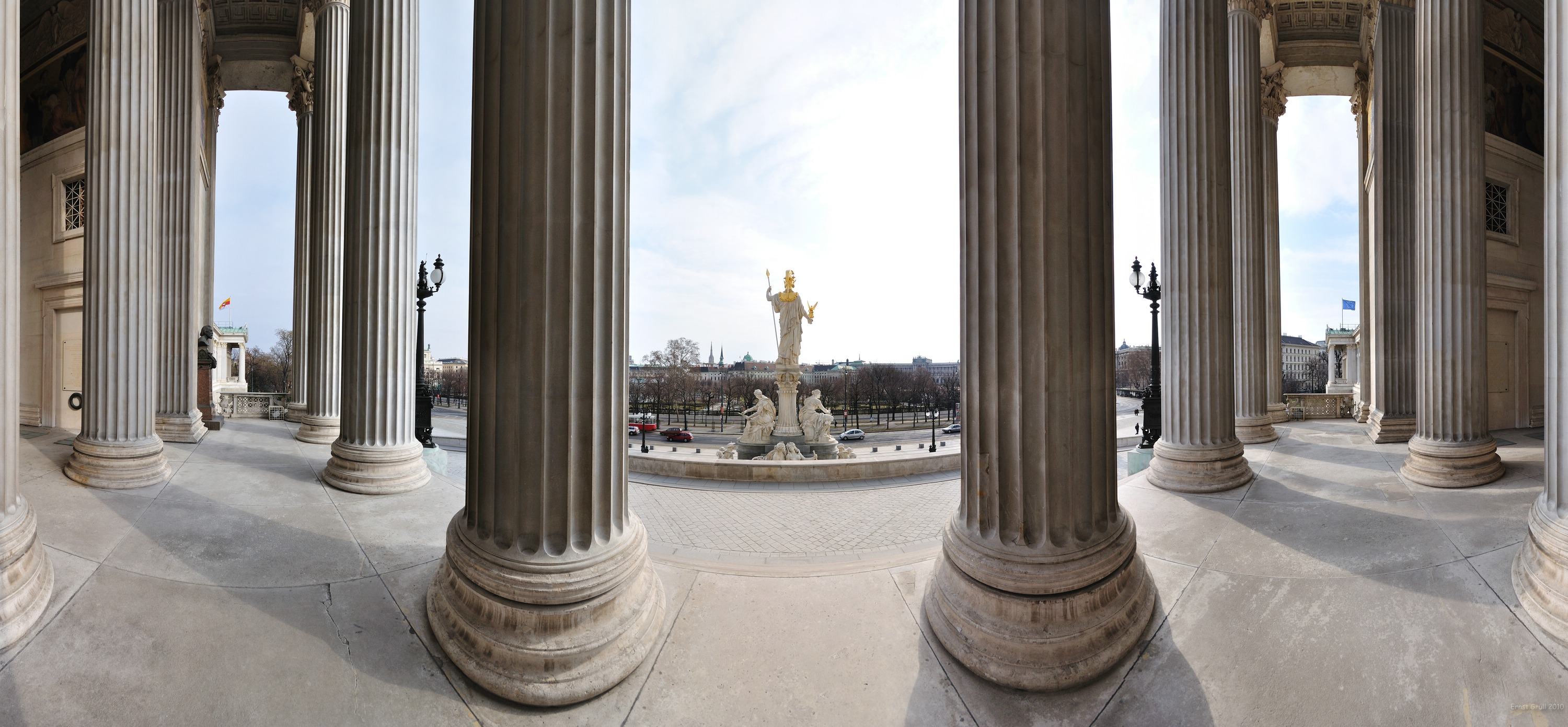 ein Blick von den Säulenreihen direkt auf Justitias Nacken