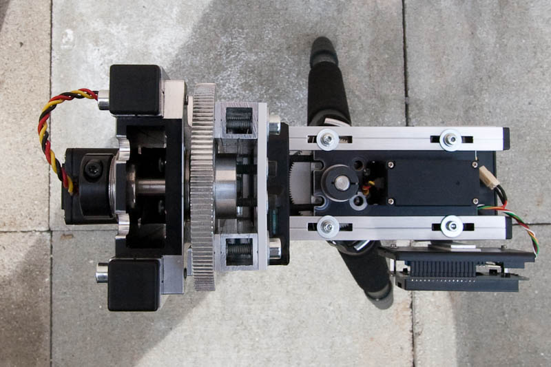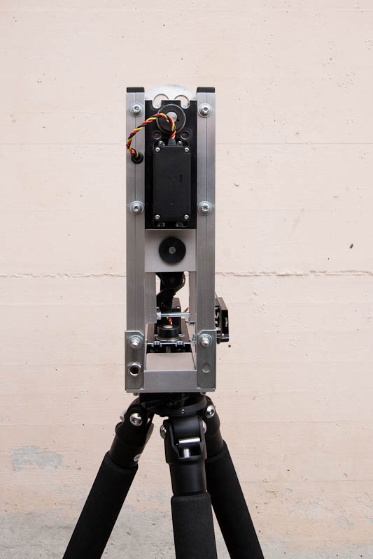 Arduino als Basis, allerdings mit Stepper und Getrieben. Zum Einstellen hab ich dann noch einen Nunchuk von der WII drangehängt.