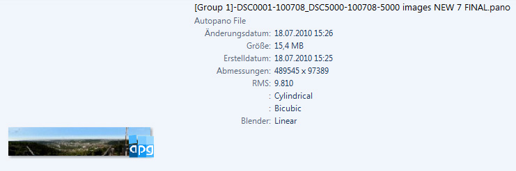 3. Die gesamte Verarbeitung durch Autopano hat 249.496 Sekunden gedauert, so stand es in Autopano.