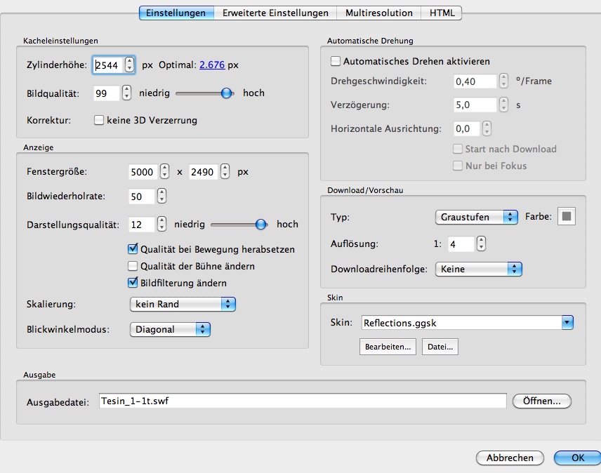Die Ursache hat erst mal nichts mit den Einstellungen in Pano2VR zu tun. Ich habe mir die Mühe gemacht und deine Beispieldatei da rein geladen (aber nicht in die Beta, die hat sich zuletzt schonmal als fehlerhaft erwiesen, sondern in die letzte gültige Version) und komme, wie nicht anders zu erwarten, zum gleichen Ergebnis und zwar ohne daß ich irgend etwas einstelle.