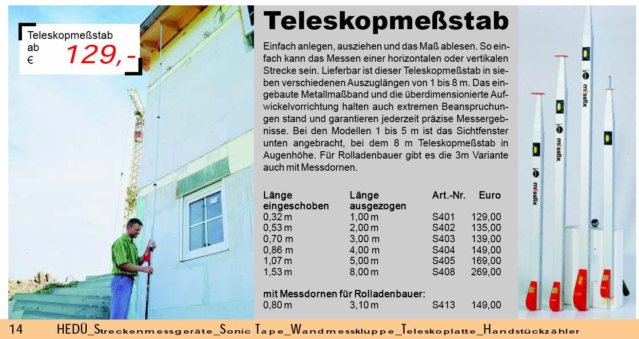 z.Bsp. in Bezug auf Arretierungen nur meterweise durch automatische Arretierungsknöpfe nur am Ende jeden Auszuges oder besser: durch Gewindeschrauben
