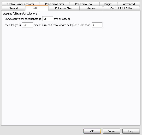 Bei PTGui ist mir aufgefallen, dass sich die Werte für die Lens-Settings auch widersprechen. Laut EXIF wird ein "Circular" mit theoretischen 180° erkannt. Das EF 15mm 1:2,8 ist doch aber ein "Fullframe". Stelle ich die Option um, werden die Werte mal besser und mal schlechter. Ich habe am Objektiv immer die Entfernung immer auf einen Meter gestellt. Welche Entfernung muß hier gewählt werden, um exakt die 15mm Brennweite zu erzielen? Dann möchte ich nämlich den Focusring mit Tape fixieren, um immer die gleichen Daten zu verwenden.