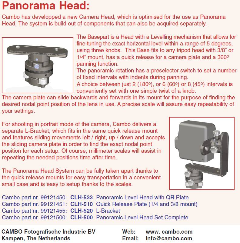 Altgediente Großformatfotografen kennen sicher den Namen Cambo, dort gibt es seit letztem Jahr einen Panoramakopf (um 720 €). Vielleicht kann jemand auf der Photokina das Teil mal genauer begutachten, hier ist der direkte Link zu Cambo: