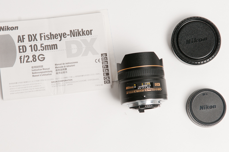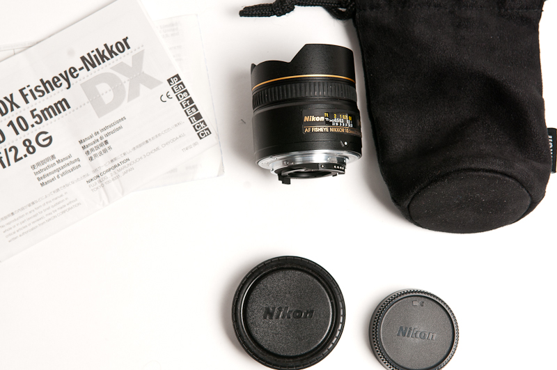 Das Objektiv wird mit Front- und Rückdeckel, sowie Objektivtasche von Nikon geliefert. Bitte beachtet auch mein Verkauf des sphärischen Nodal-Kopfs von Nina, Ultimate R1, inklusive Adapterring für genau dieses 10.5 mm.