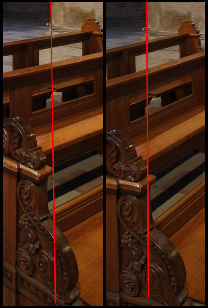 Jetzt die Frage: kann ich beim Stichen überhaupt was dagegen tun? Der Fotograf meint zwar, der Nodalpunkt würde stimmen, aber hier in meinem Arbeitsbereich bin ich wirklich mit meinem Latein am Ende. Vielleicht ist doch beim Fotografieren was schiefgelaufen? Kleine Verschiebungen reichen ja anscheinend schon um solche Fehler zu produzieren. Stempeln mit Photoshop steht außer Frage, ich möchte das Problem an der Wurzel packen.