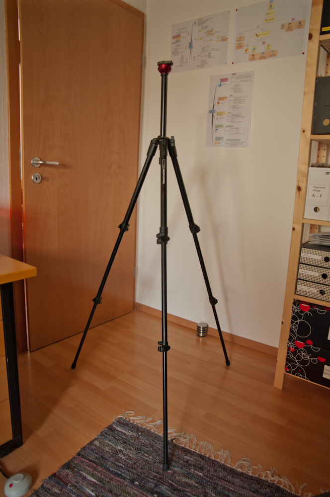 Toll an dem Stativ, bzw. für die schnelle Ausrichtung bei Panoramen ist die nivellierbare Mittelsäule.