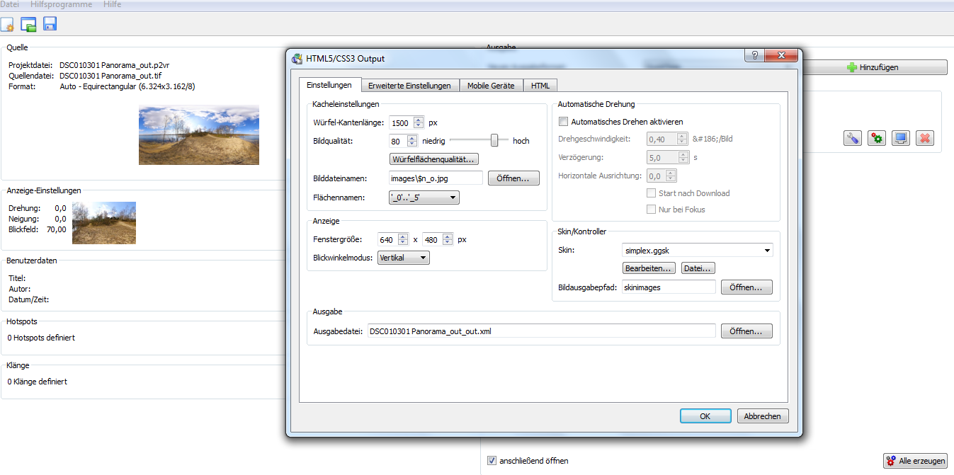 Ich habe auf die obige Pano2vr Version upgegradet um HTML 5 Dateien ausgeben zu können ( IPhone, IPad usw.)