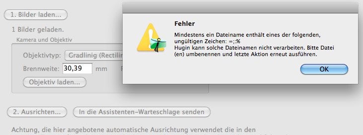 Ich möchte über den Assistent Dateien in Hugin importieren. Hab es mit tiffs und jpegs versucht, beide über Lightroom entwickelt und bekomme