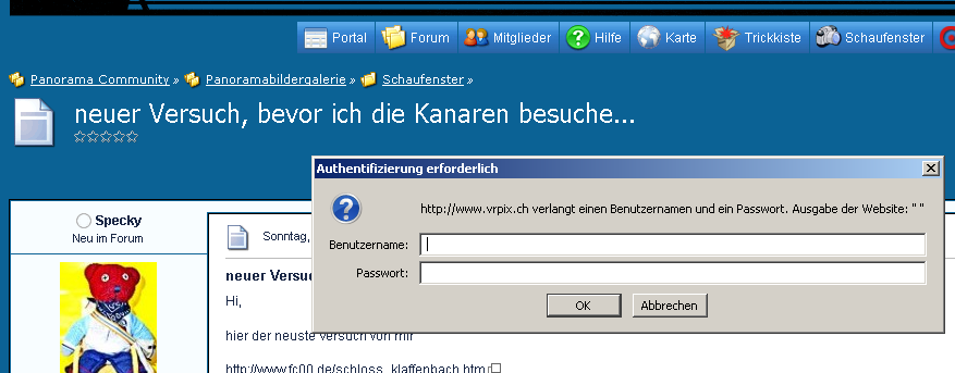Diese Meldung kommt von crohammer er hat ein Bild verlinkt von seiner Homepage in seiner Signatur und die Seite ist nur mit Password zugänglich. Nicht ideal gemacht würde ich mal sagen.
