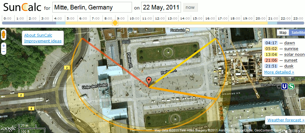 Wer noch kein passendes Panorama vom Pariser Platz hat, kann hier schon mal gucken wo am 21.12.2012 die Sonne stehen wird.