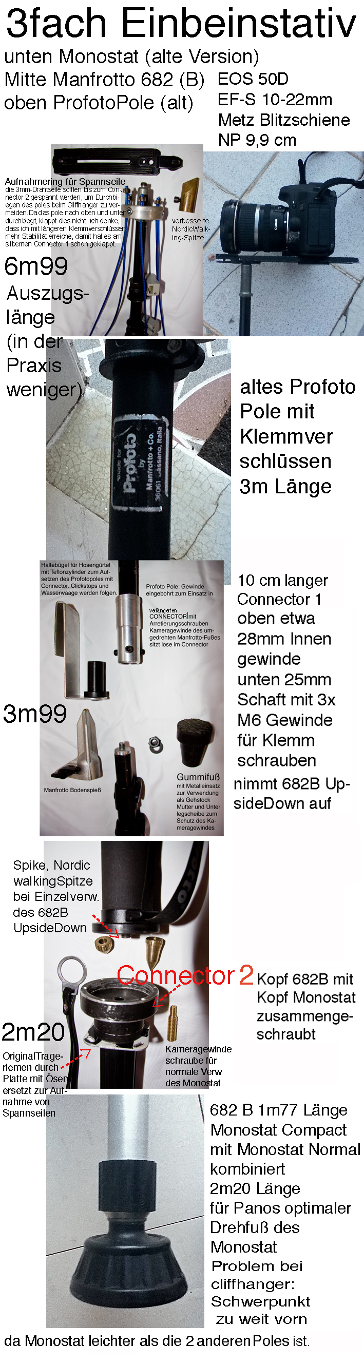 Letztlich war es ein Experimentierfeld, bei dem ein paar interessante Ideen und Zubehörteile verwirklicht wurden. Das eine oder andere hiervon ist auch auf andere Einbeinstative übertragbar, z.Bsp.