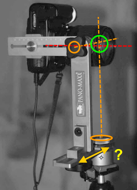 Was aber auch der Fall sein kann. Der PanoMaxx oder der Rotator kippt leicht nach hinten durch das Gewicht. Beim Schwenken wird der Hebelarm kürzer und somit kommt der Nodalpunkt weiter nach vorne.