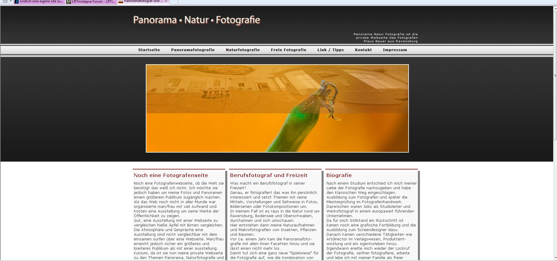 Für eine Fotografenpräsentation erscheint mir deine Seite zu textlastig, ohne deine Vorzüge genauer darzustellen. Die Textinformationen sind mehr allgemeiner Natur. Ich finde, dass der Text hier eher an der Oberfläche bleibt und nicht rasch zum Punkt kommt. Der Name deiner website ist da genau gegenteilig und in Bezug auf google Suche geschickt gewählt - panoramafotograf.eu Danach wird aber gleich das Tempo rausgenommen: "ob die Welt noch eine Fotografenseite braucht, ich weiß es nicht. Als das web noch nicht in aller Munde war" usw. Wirkt mir viel zu erzählerisch, ohne etwas über dich zu erzählen. Wo es interessant werden könnte, sagst du jedoch recht wenig: die Verbindung von Panorama und Makrofotografie erwähnst du, ohne genauer darauf einzugehen, obwohl sie doch ein Alleinstellungsmerkmal von dir sein könnte. Deine Makrofotos bspweise sind doch toll, handwerklich ordentlich und haben eine plakative aber trotzdem natürliche Farbwelt. Gibt es da noch mehr zu erzählen, sind spezielle Techniken notwendig oder kann jeder Makrofotograf seine Fotografie auch mit Panoramafotografie kombinieren? Und kann jemand, der mit Panoramafotografie bewandert ist, auch Makrofotografie und auch noch beides zs.verbinden?