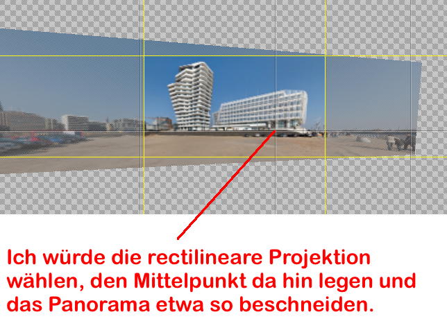 Stürzende Linien sind behoben, wenn die Stecke "Projektionsmittelpunkt zu Aufnahmestandpunkt" senkrecht zur aufgenommenen Fläche steht.