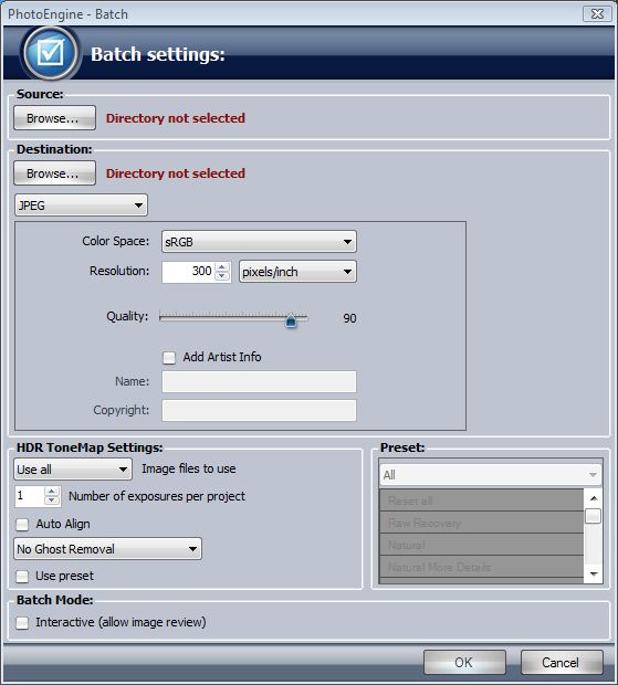 Kann es sein, dass die Batch-Funktion in der Testversion von Oloneo deaktiviert ist? Bei mir ist der Menüpunkt nicht auswählbar.