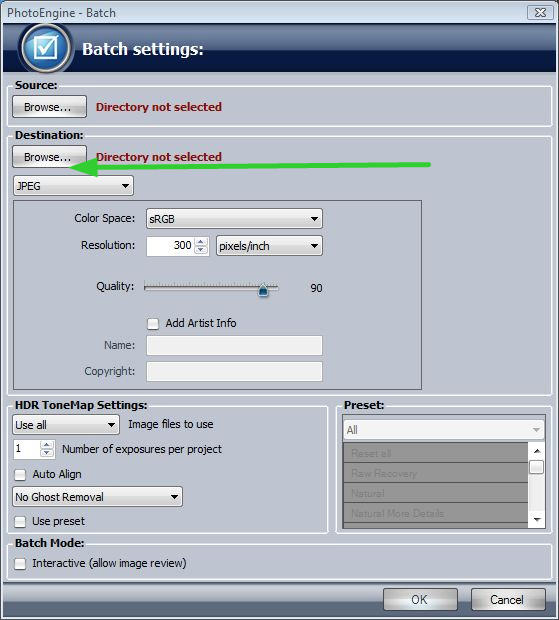 Habe Deinen Screenshot mit einem Pfeil versehen. Ist es möglich sich ein wenig Klickarbeit zu ersparen in dem man irgendwo einstellen kann das die erzeugten HDRs im selben Ordner wie die Originale ausgegeben werden?