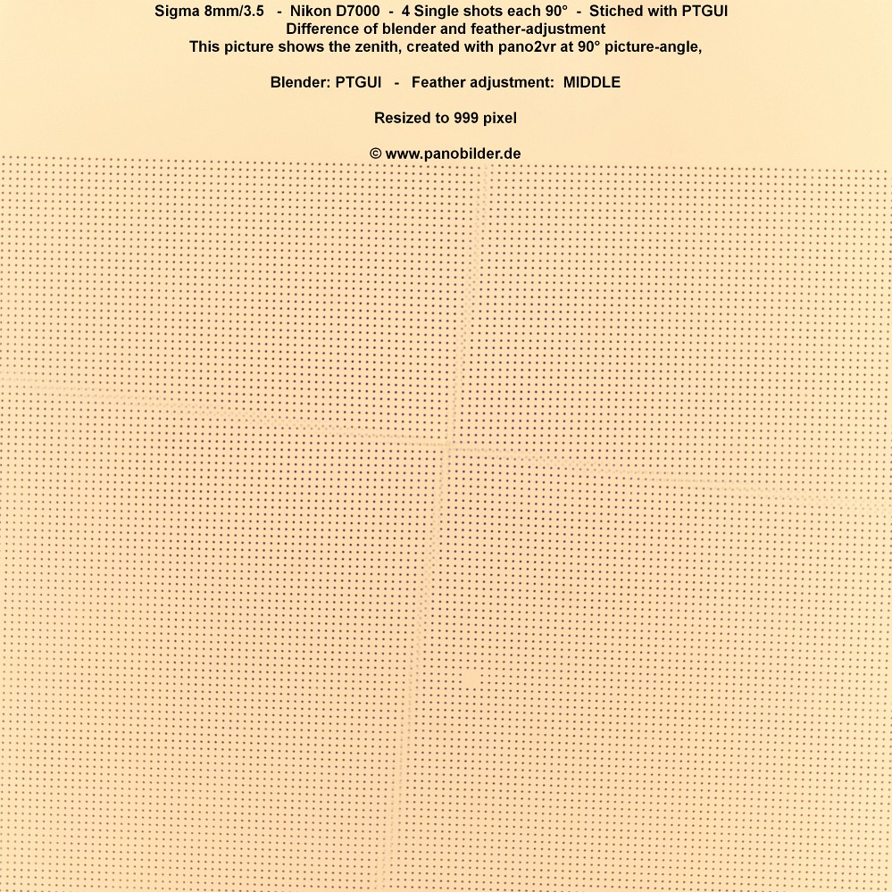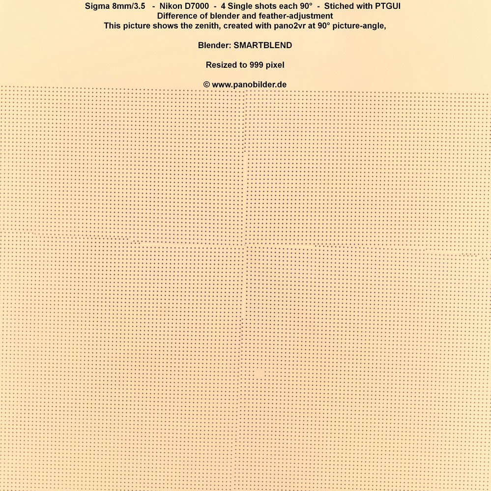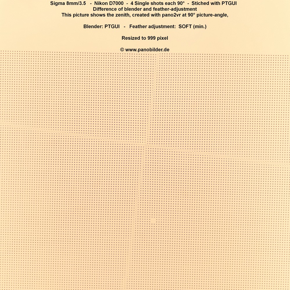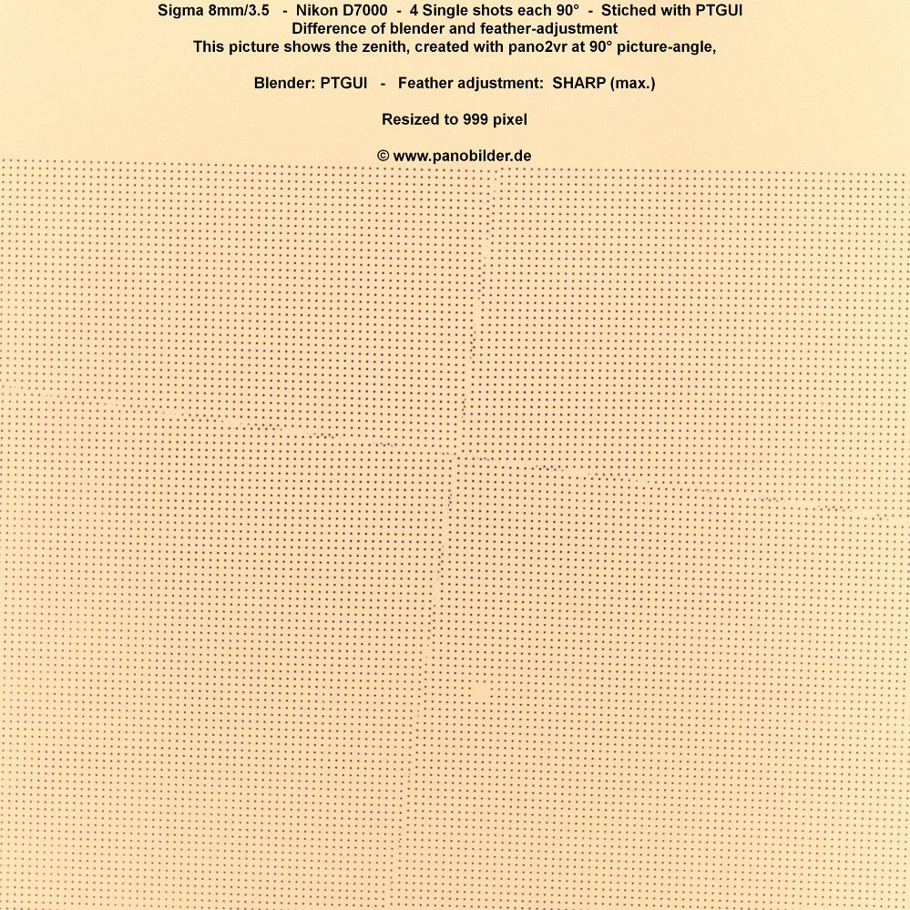 D.h. es ergibt sich dass im Zenit (90° nach oben) die 4 Einzelbilder zum "Pol" hin zusammenlaufen und kleinste Fehler bzw Stichabweichungen sichtbar werden, WENN das Motiv dies erlaubt.