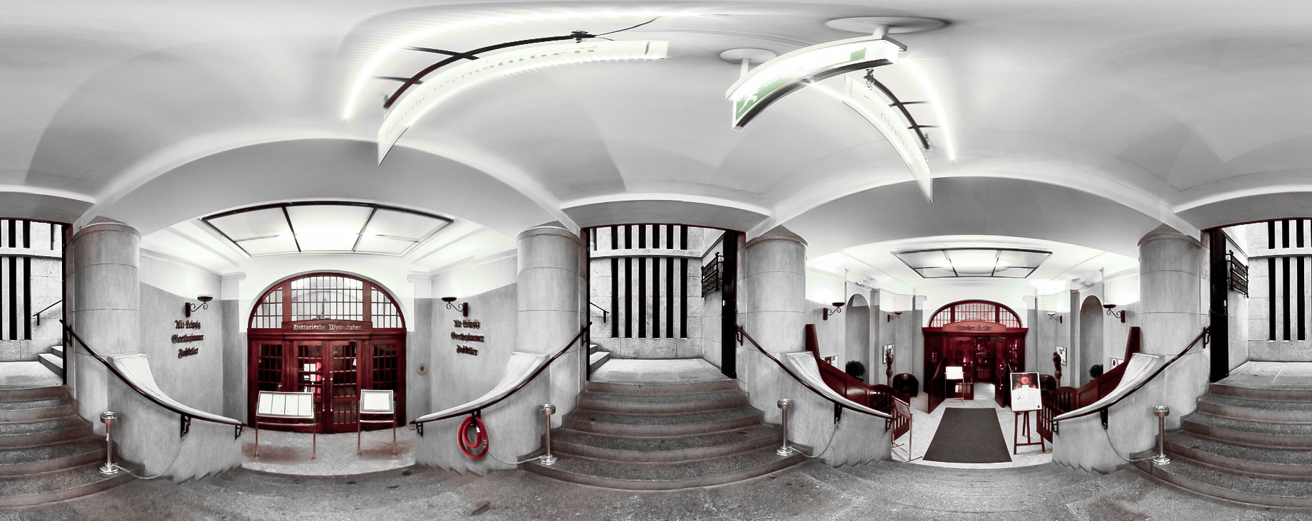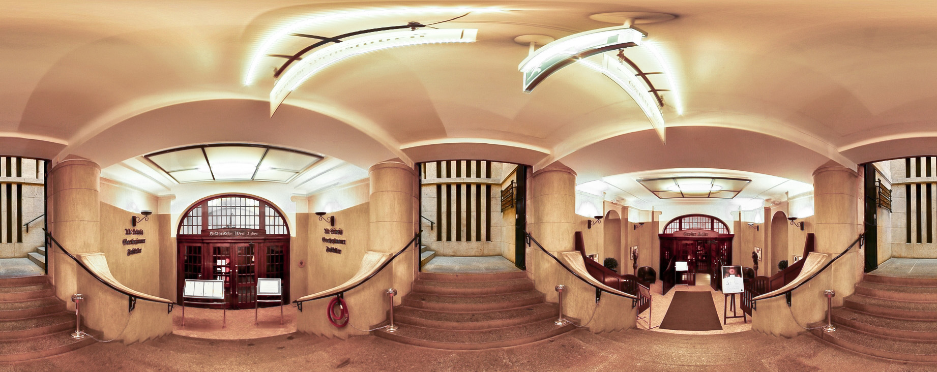 Was anderes fällt mir aber noch auf: irgendwo hat's mächtig bei den Aufnahmen gewackelt: Schau mal auf die Deckenlampen, die seitlichen Wandlampen, die Säulen an den unteren Eingängen usw.