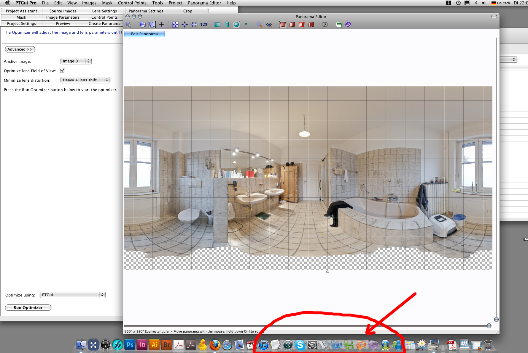Nun war der Zufall, dass PTGui nach Neuinstallation das Arbeitsfenster zum Eingeben der Pich-, Yaw- und Roll-Werte, welches aufgeht, NACHDEM man den 123-Button drückt,