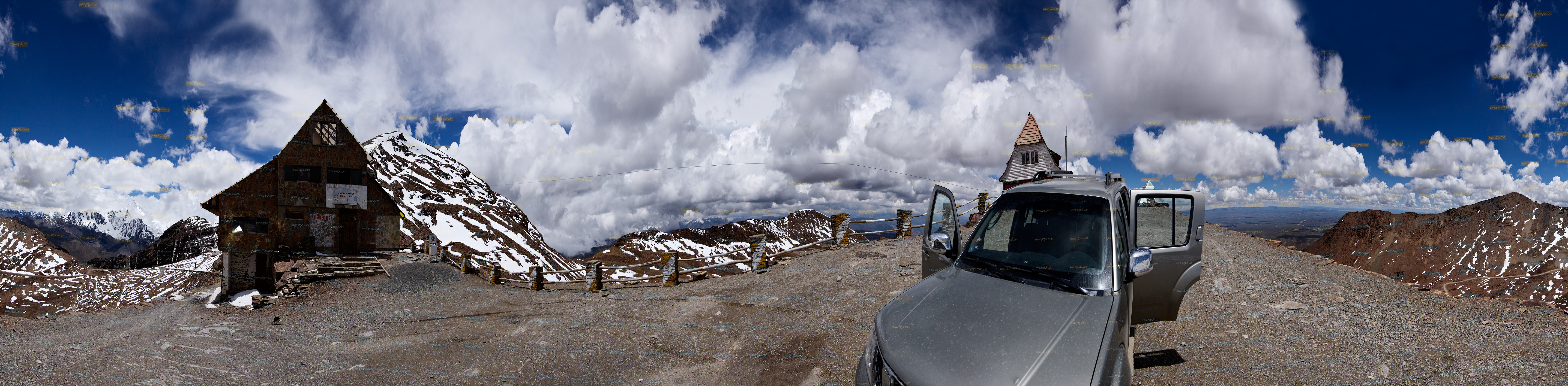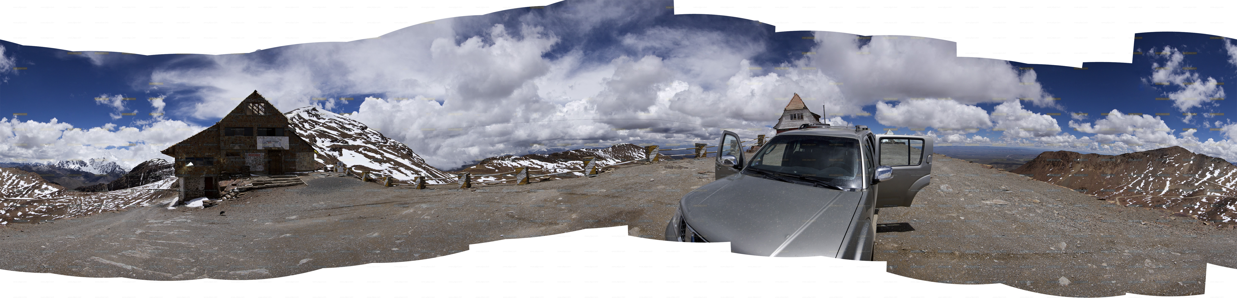 Auf mich wirkt der Horizont auch etwas krumm, wobei hier auch keine gerade Horizontlinie sondern Gebirge vorliegen. Und ich bin mir auch nicht sicher, ab wann sich die Erdkrümmung im Bild bemerkbar machen würde, im Foto schaut man von 5200 Meter einen km hinunter. Der Bildhorizont ist allerdings auch etwa 80 km entfernt.