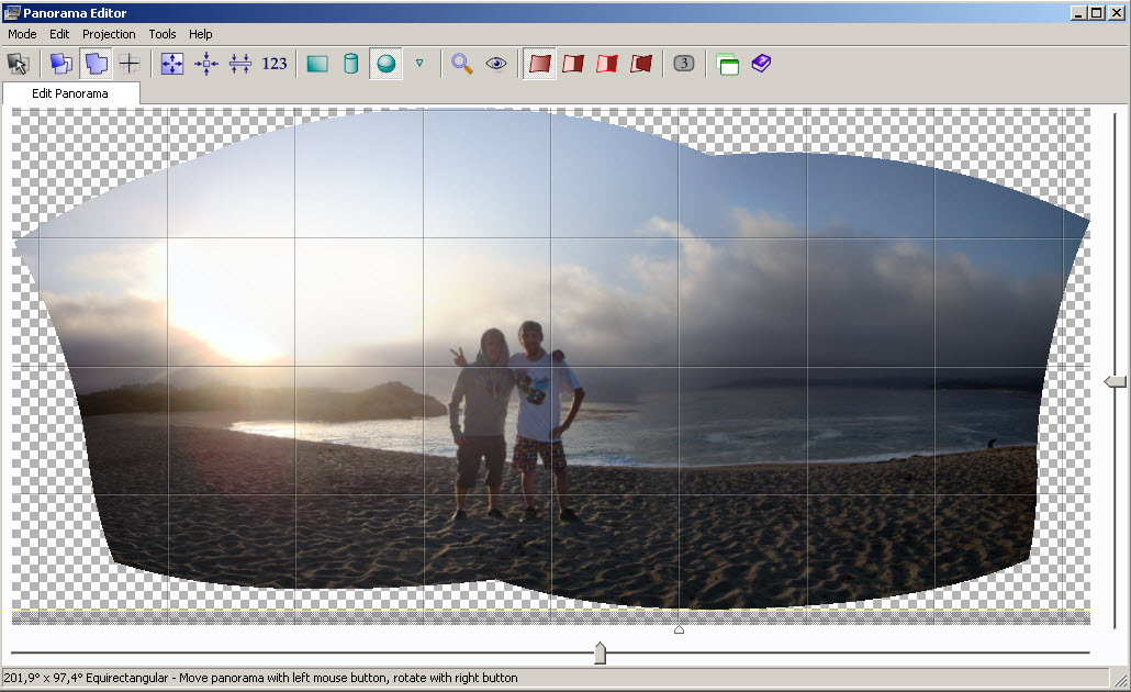 ich hab Deine Bilder mal in PTGui zusammengesetzt. Erst wollte es nicht so recht, aber als ich dem Programm gesagt habe, was ich gerne hätte, war es brav.