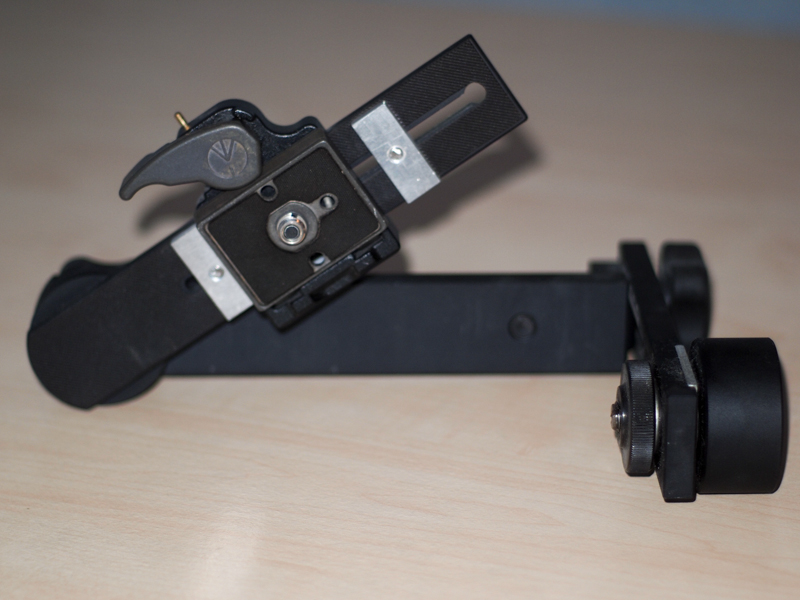 Er wurde mit einer Manfrotto Schnellwechselplatte und zwei Anschlägen ausgerüstet.