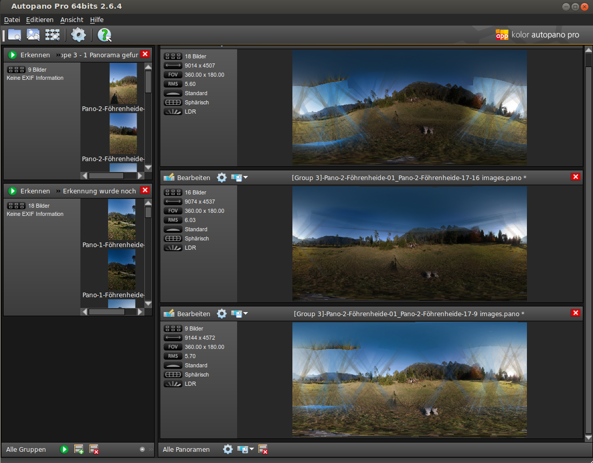 Interessanter Weise wurden einige Panoramen aus den in die RAWs