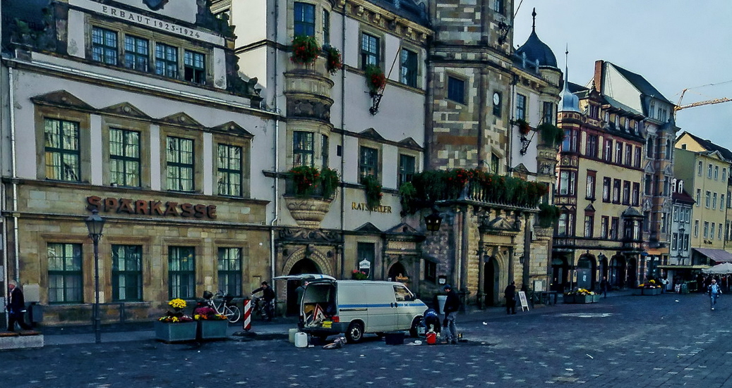 Was mich am Panorama stört, dass der Pflasterboden fast die Hälfte der Bildfläche einnimmt. Panos, die mitten auf einem freien großen Platz gemacht werden, leiden oft an Motivlosigkeit und Eintönigkeit.