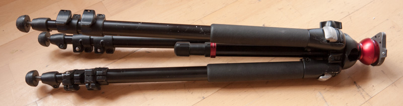 Als weiteres gekauftes Extra hat das Stativ Füßebei dem Gummis hochgedreht werden können und man dann Metalldorne am Ende hat.