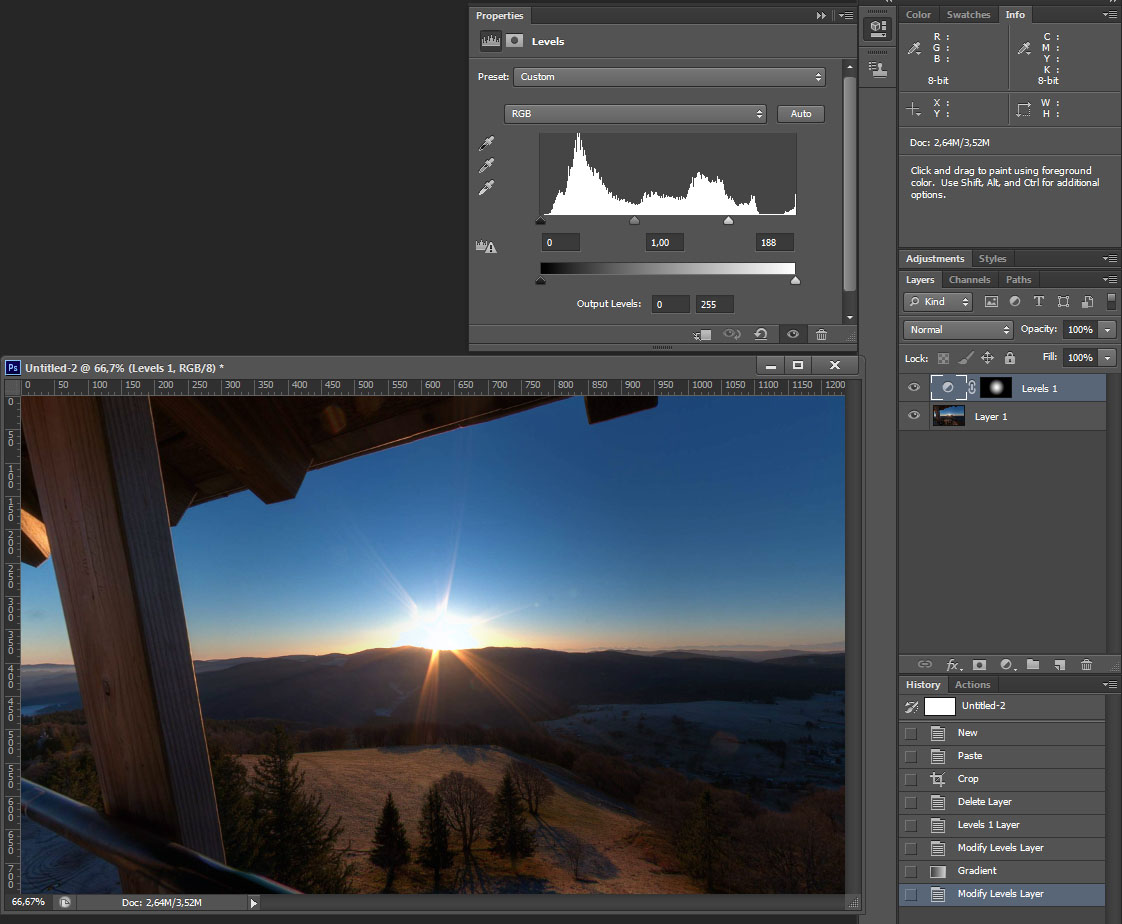 - Die Sonne gefällt mir so gar nicht. Erstens ist der Übergang zum ausgefressenen hin zu scharf. Und die Farbe der Sonne ist zu dunkel. Der Bereich in der Sättigung sollte dann schon ein reines weiß sein.